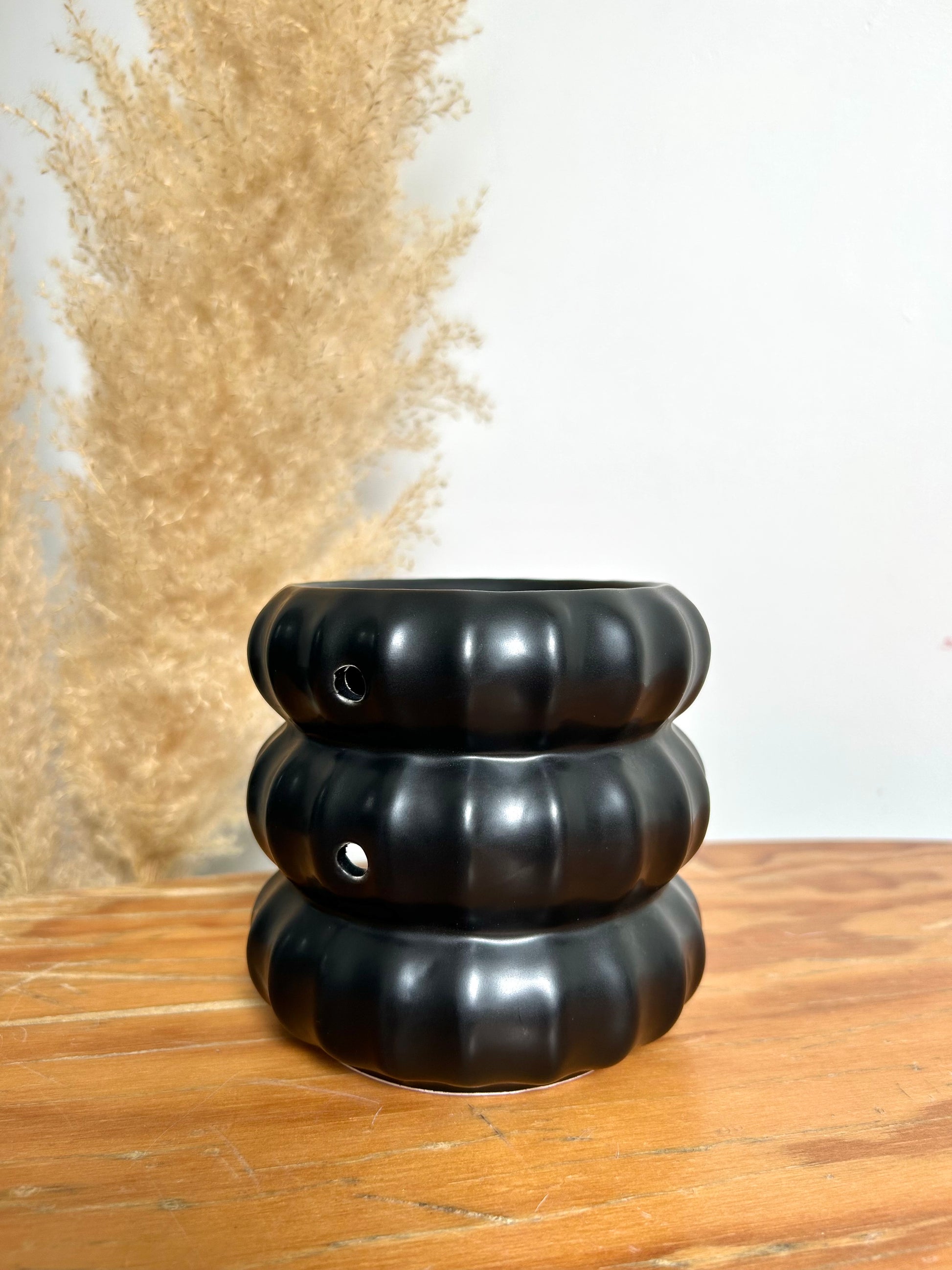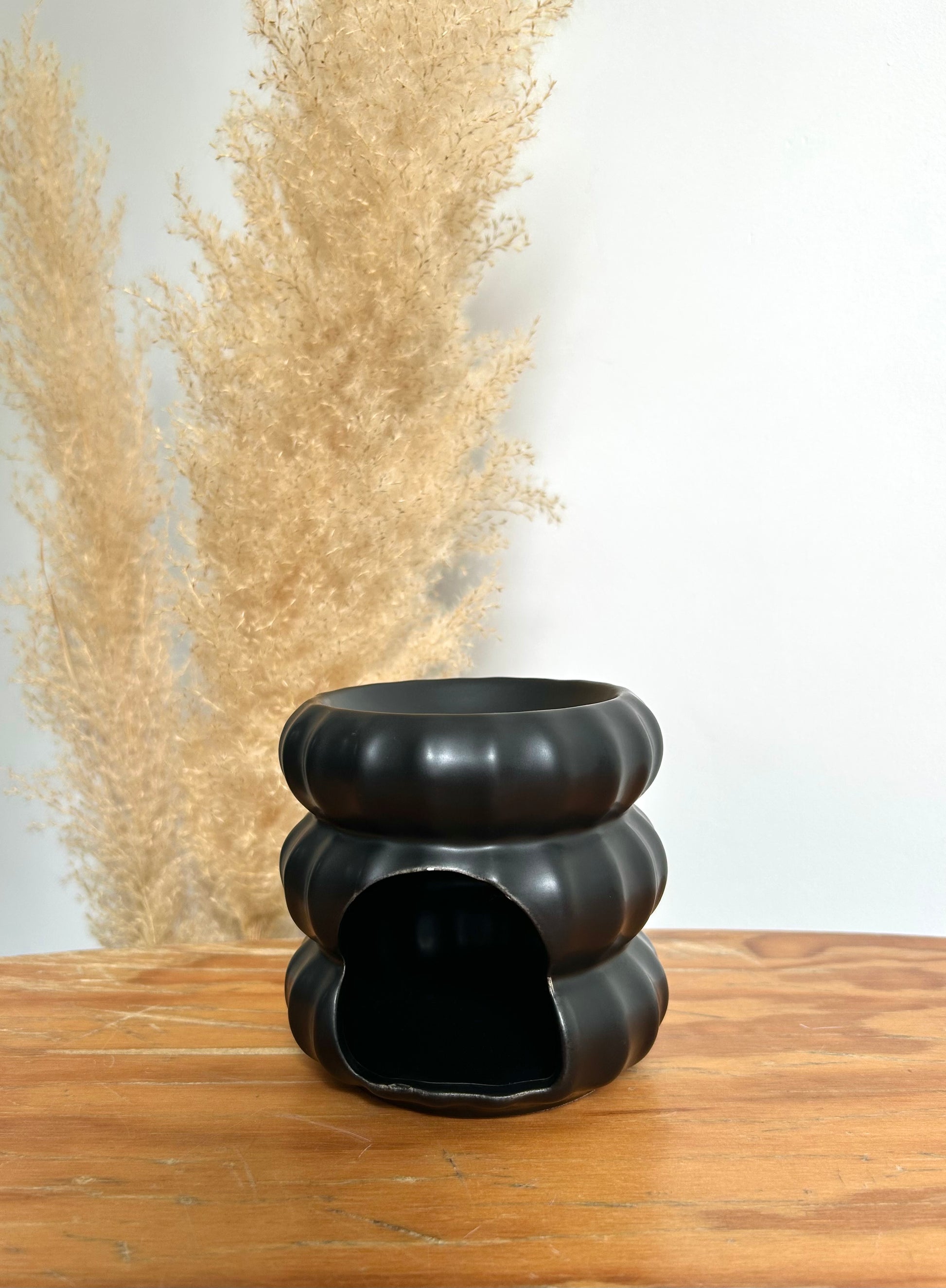 Découvrez notre Brûleur FOND DE TOI, un accessoire au design raffiné. Fabriqué en céramique, il se distingue par sa finition noire mate et sa forme incurvée avec trois sections superposées. Idéal pour accueillir vos fondants parfumés, ce brûleur allie élégance et fonctionnalité avec son esthétique moderne.