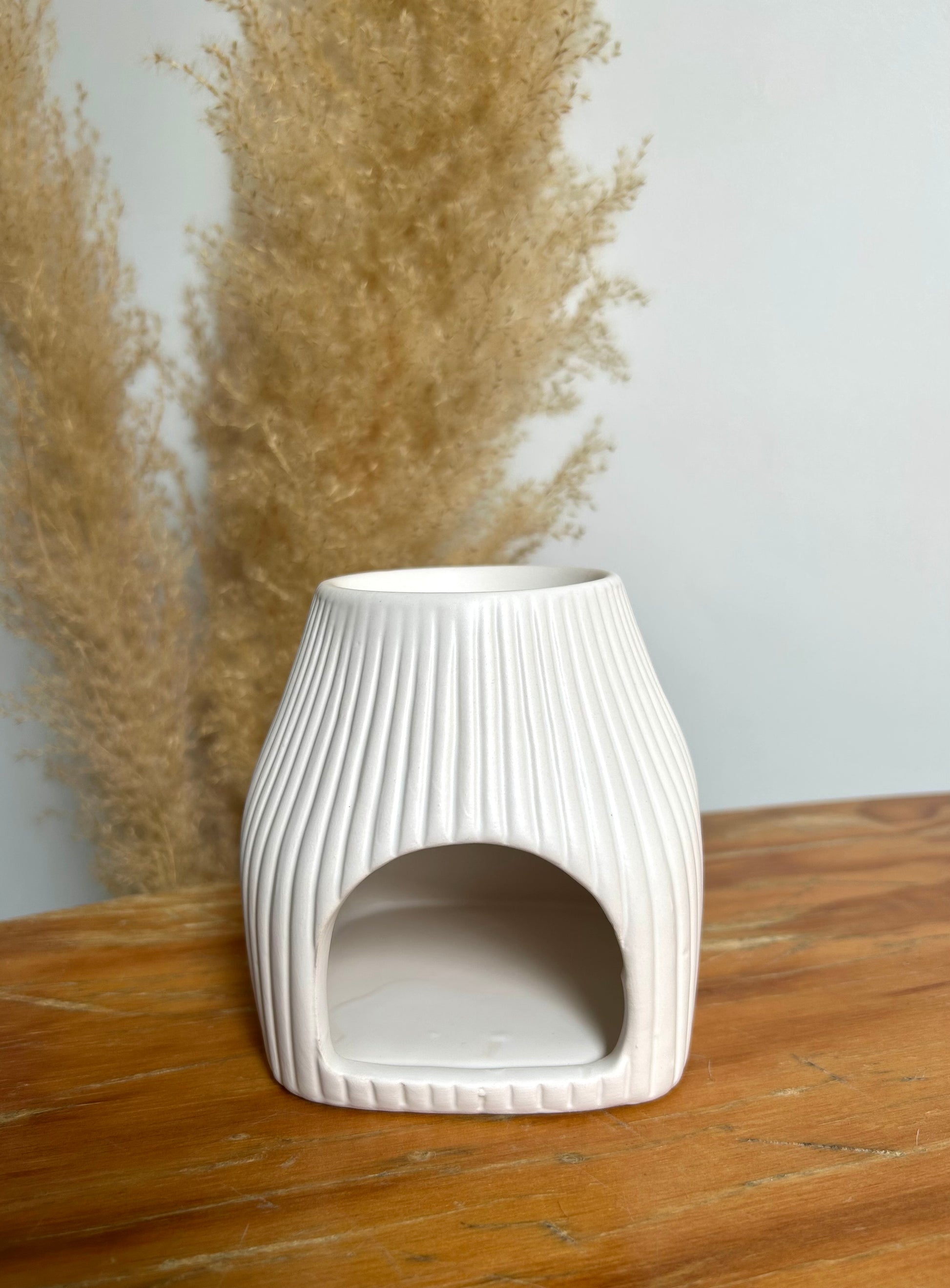 Découvrez notre Brûleur COUP DE FONDEUR, un accessoire au design élégant et épuré. Fabriqué en céramique, il se caractérise par sa finition blanche mate et sa forme conique texturée avec des lignes verticales subtiles. Parfait pour diffuser vos fondants parfumés, ce brûleur apporte une touche de modernité et de douceur à votre espace.